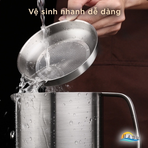 - Lọc Dầu Hiệu Quả: Lưới lọc mịn giúp loại bỏ cặn bã, giữ dầu ăn sạch sẽ.