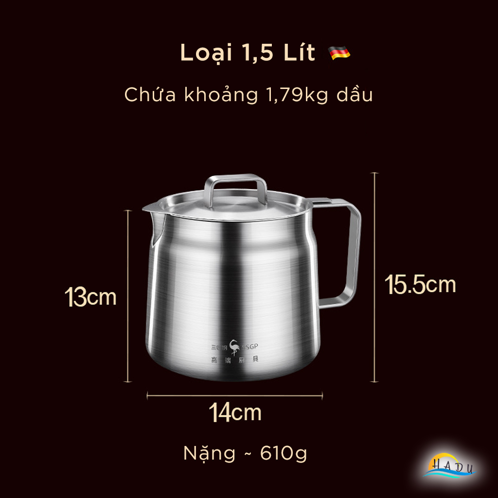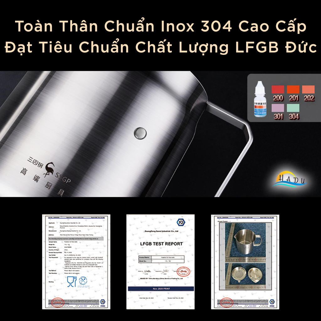 Bình Lọc Dầu Ăn Inox 304 SSGP, Kèm Lưới Lọc Mịn, Vòi Rót, Đạt Chất Lượng LFGB Đức
