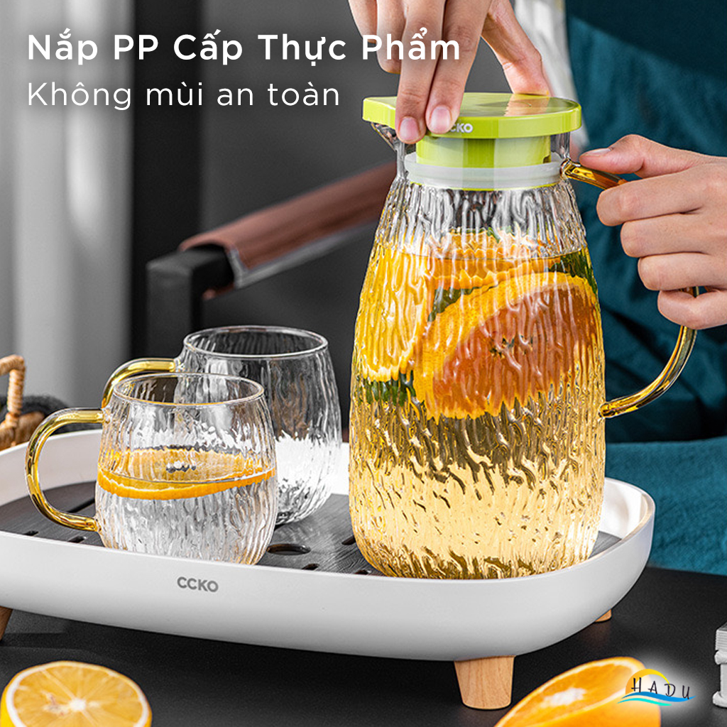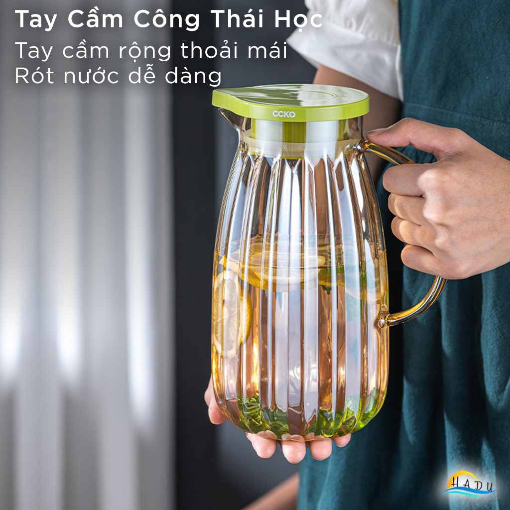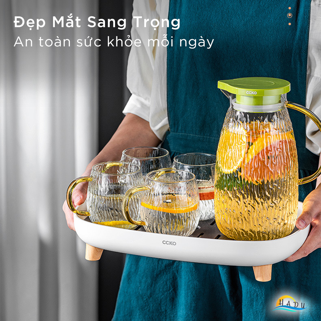 Bộ Bình và Cốc Thủy Tinh CCKO, Bình 1.8L Nắp Tự Động, Chịu Nhiệt, Nhiều Màu