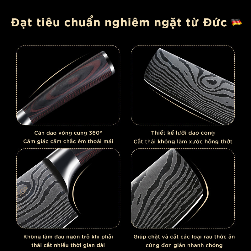 ✔️ Chất Liệu Inox Cao Cấp: Được nhập khẩu từ Đức, đảm bảo độ bền và độ sắc bén lâu dài.