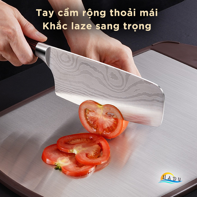 ✔️ Thiết Kế Sang Trọng: Khắc laze trên mặt dao tạo vân đẹp mắt, mang lại vẻ sang trọng cho không gian bếp.