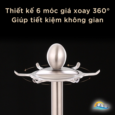 - Thiết kế 6 móc giá xoay 360 độ giúp lấy đồ nhanh mà lại tiết kiệm không gian.