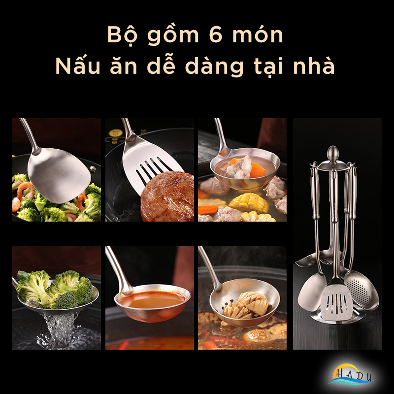 Bộ Dụng Cụ Nhà Bếp Nấu Ăn 6 Món Inox 304 Cao Cấp Đạt Chất Lượng Đức Xoay 360 Độ SSGP