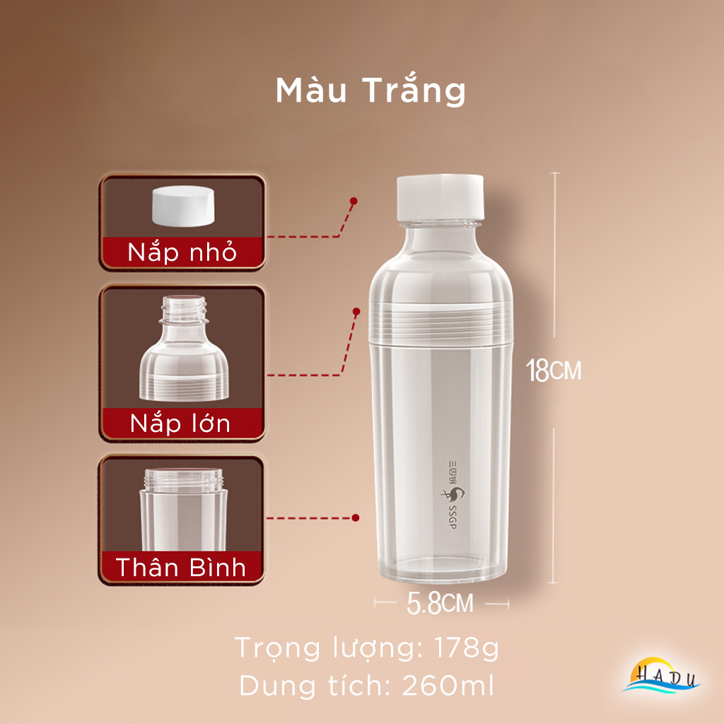 Chai Đựng Nước Ép Hoa Quả Trái Cây Bằng Nhựa Kiêm Cốc 260ml Cao Cấp Đạt Chất Lượng LFGB Đức SSGP