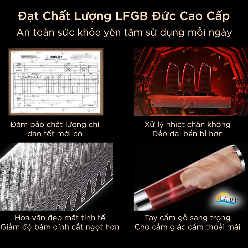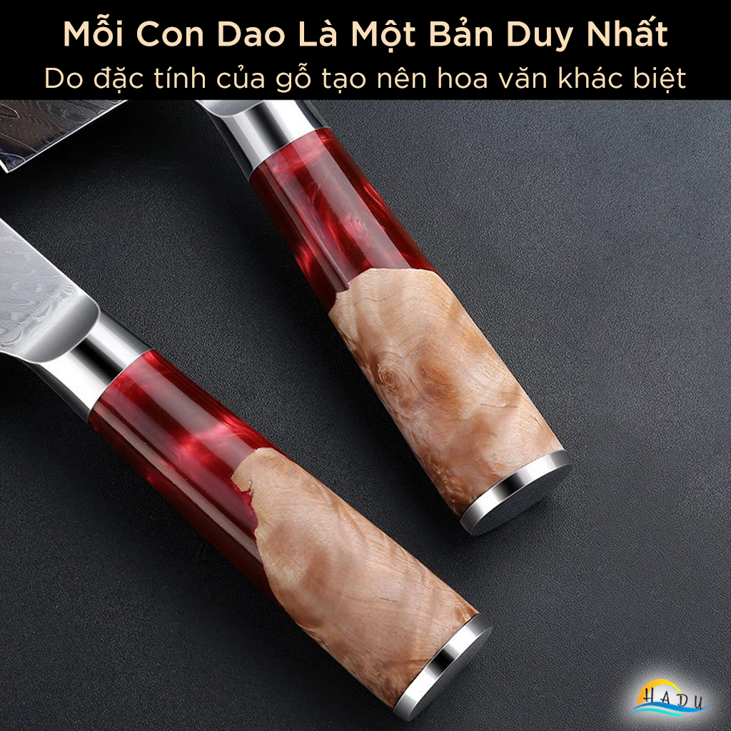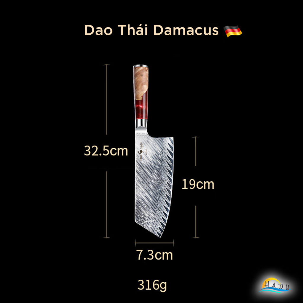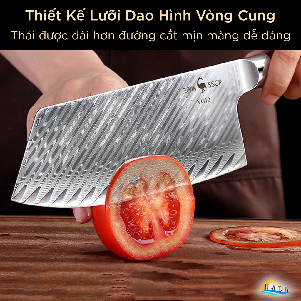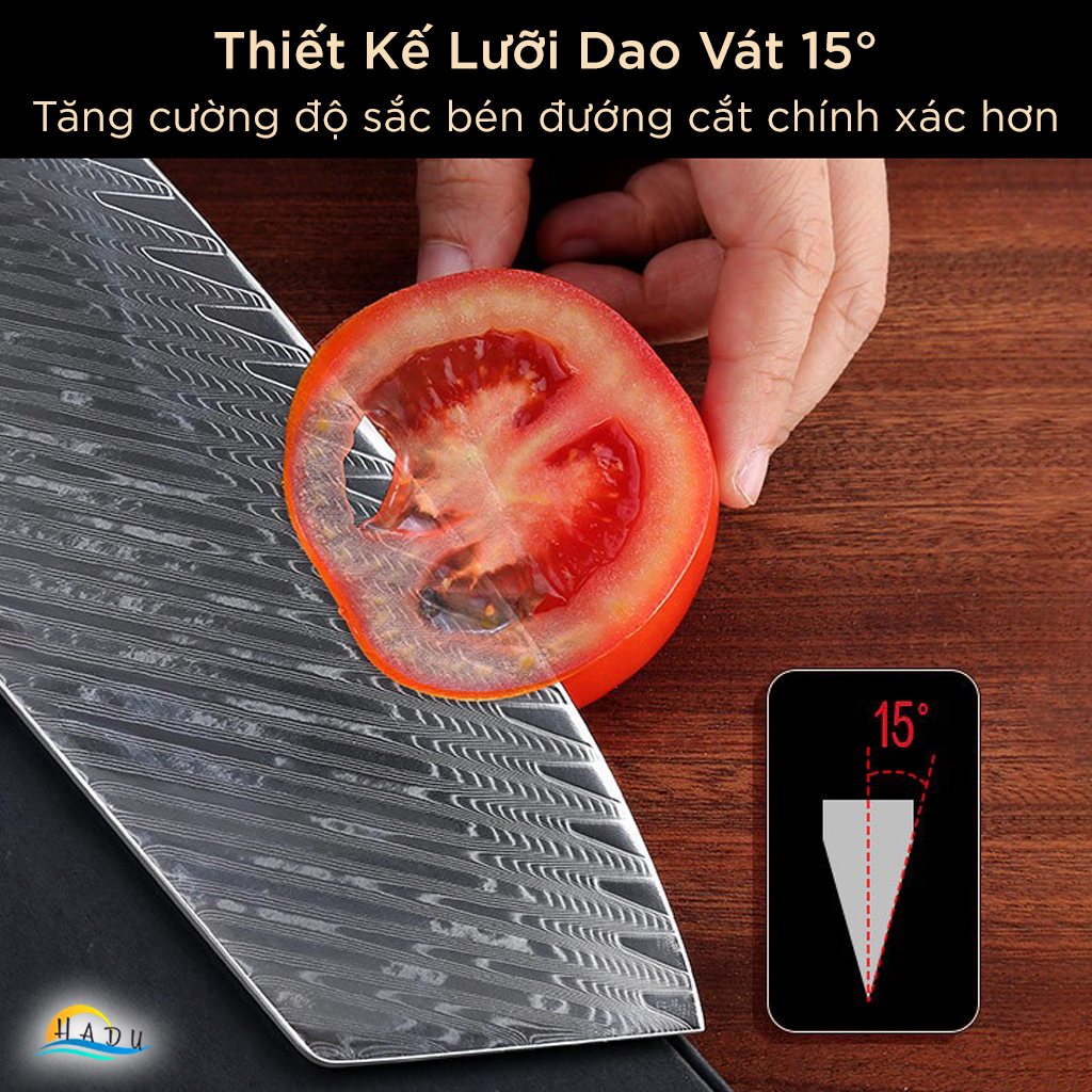 - Vẻ Ngoài Sang Trọng: Hoa văn rèn thủ công trên lưỡi dao mang lại sự tinh tế và đẹp mắt, là món quà tuyệt vời cho các tín đồ ẩm thực.