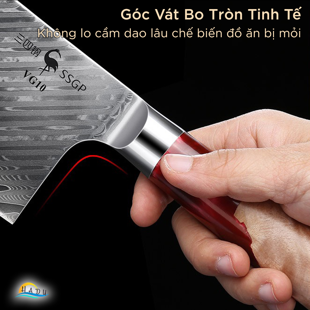 - Bền Bỉ và An Toàn: Thép VG10 siêu cứng giúp dao bền lâu, không gỉ sét, và đảm bảo an toàn cho sức khỏe.