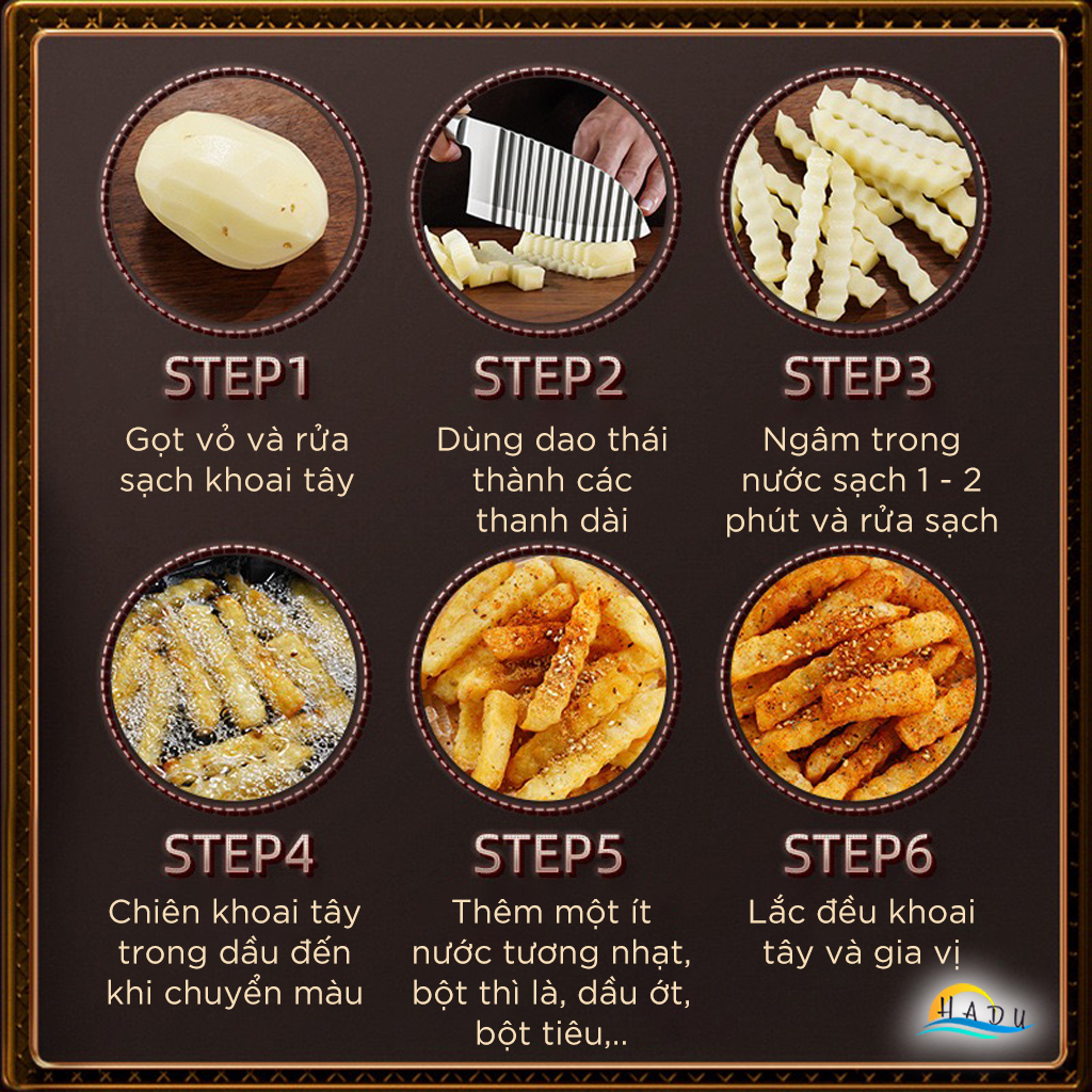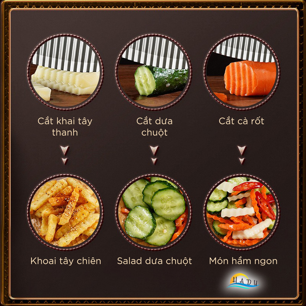 - Cắt Chính Xác và Đẹp Mắt: Lưỡi dao lượn sóng giúp cắt rau củ, trái cây đẹp mắt, không bị nát hay chảy nước.