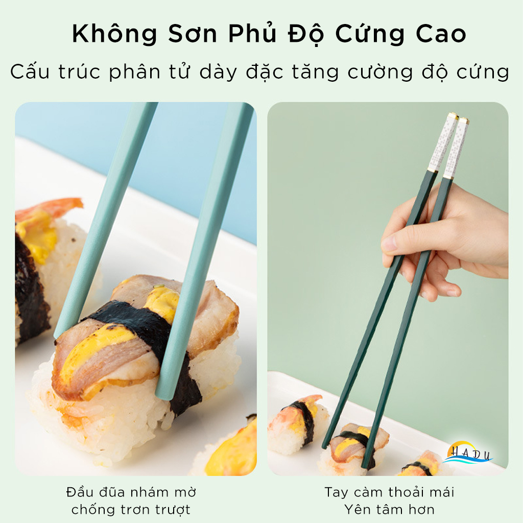 Đũa Ăn Cao Cấp Hợp Kim PET + Sợi Thủy Tinh, Chống Trơn Trượt, Chống Ngấm Nước, Màu Xanh Bắc Âu, Dài 27,3cm HADU