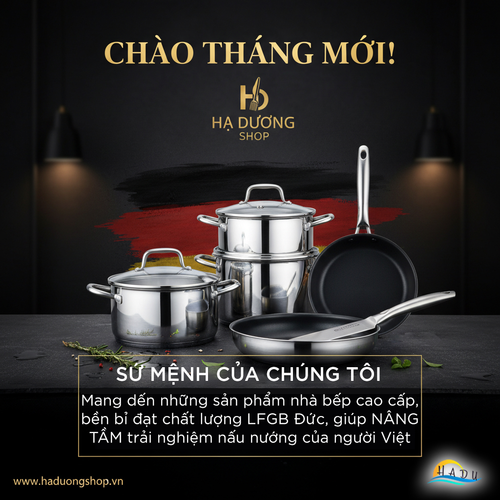 Chào tháng mới rực rỡ! Nhân dịp này, Hạ Dương Shop muốn dành thời gian chia sẻ về kim chỉ nam, về sứ mệnh mà chúng tôi luôn theo đuổi: Mang đến những sản phẩm đồ gia dụng nhà bếp cao cấp, bền bỉ, giúp nâng tầm trải nghiệm nấu nướng của gia đình Việt.