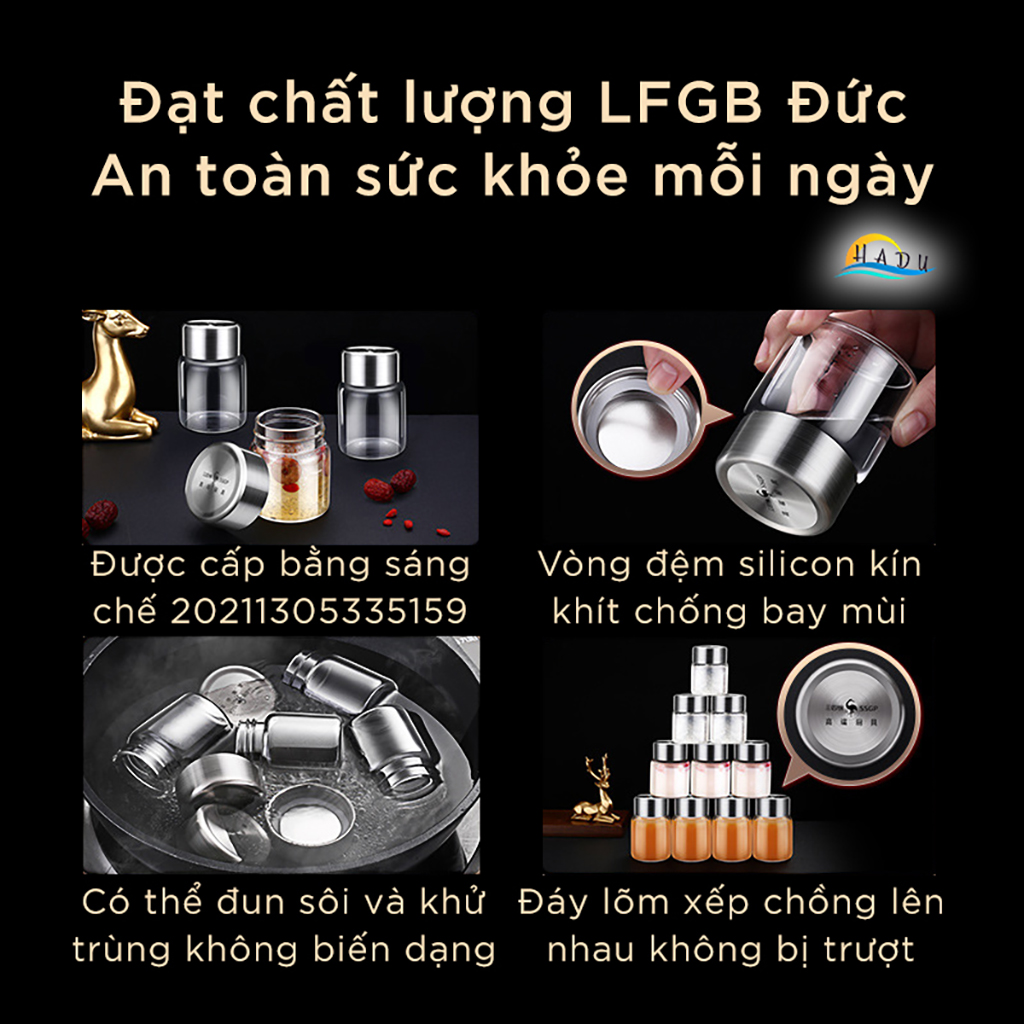🔥 Chất Lượng Cao Cấp: Hũ chưng yến thủy tinh borosilicat cao cấp, chịu nhiệt và va đập tốt.