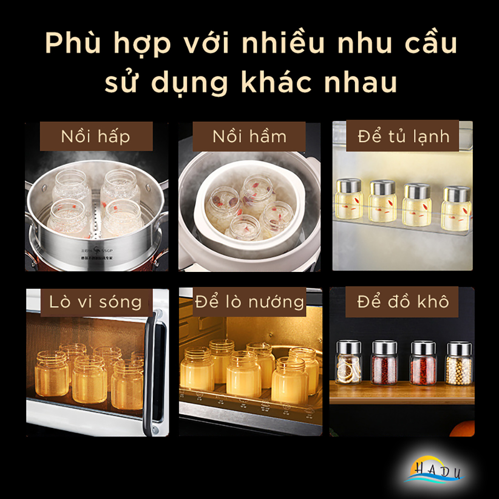 🌀 Phạm vi áp dụng: Chưng yến, đựng sữa chua, mật ong, gia vị...
