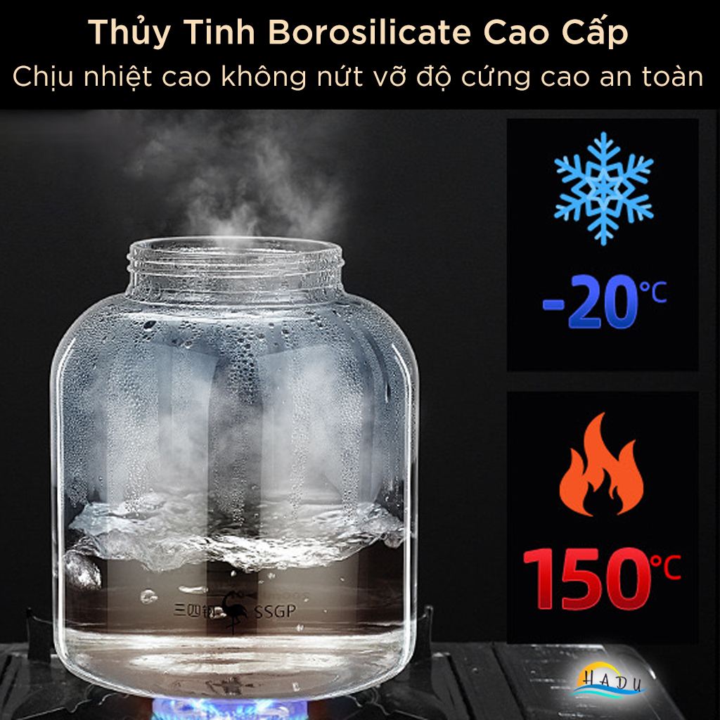 • Chất Liệu: Thủy tinh borosilicate cao cấp + Nắp inox 304