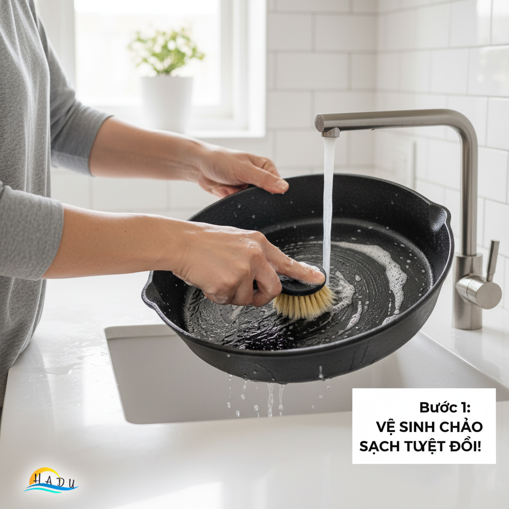 Bước 1: Vệ Sinh Chảo Sạch Tuyệt Đối