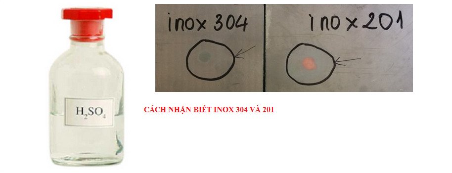 - Phân biệt inox 304 bằng axit đặc (H2SO4 hoặc HCL)