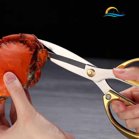 Kéo Cắt Gà Nhà Bếp Đa Năng HADU, Inox 304, Sắc Bén, Chống Trượt, 19cm, Màu Vàng Bạc