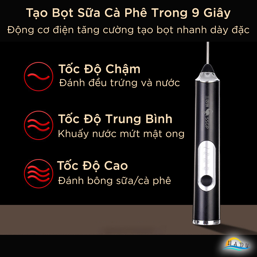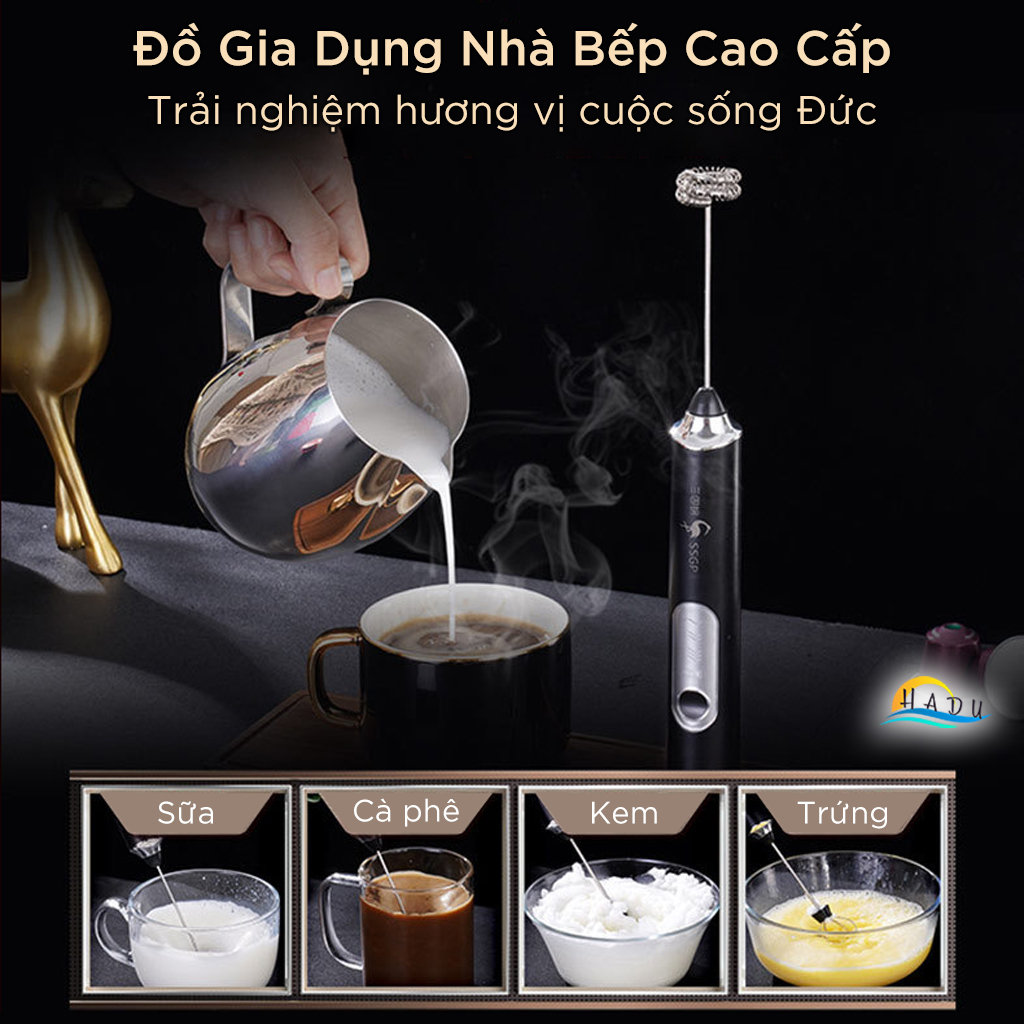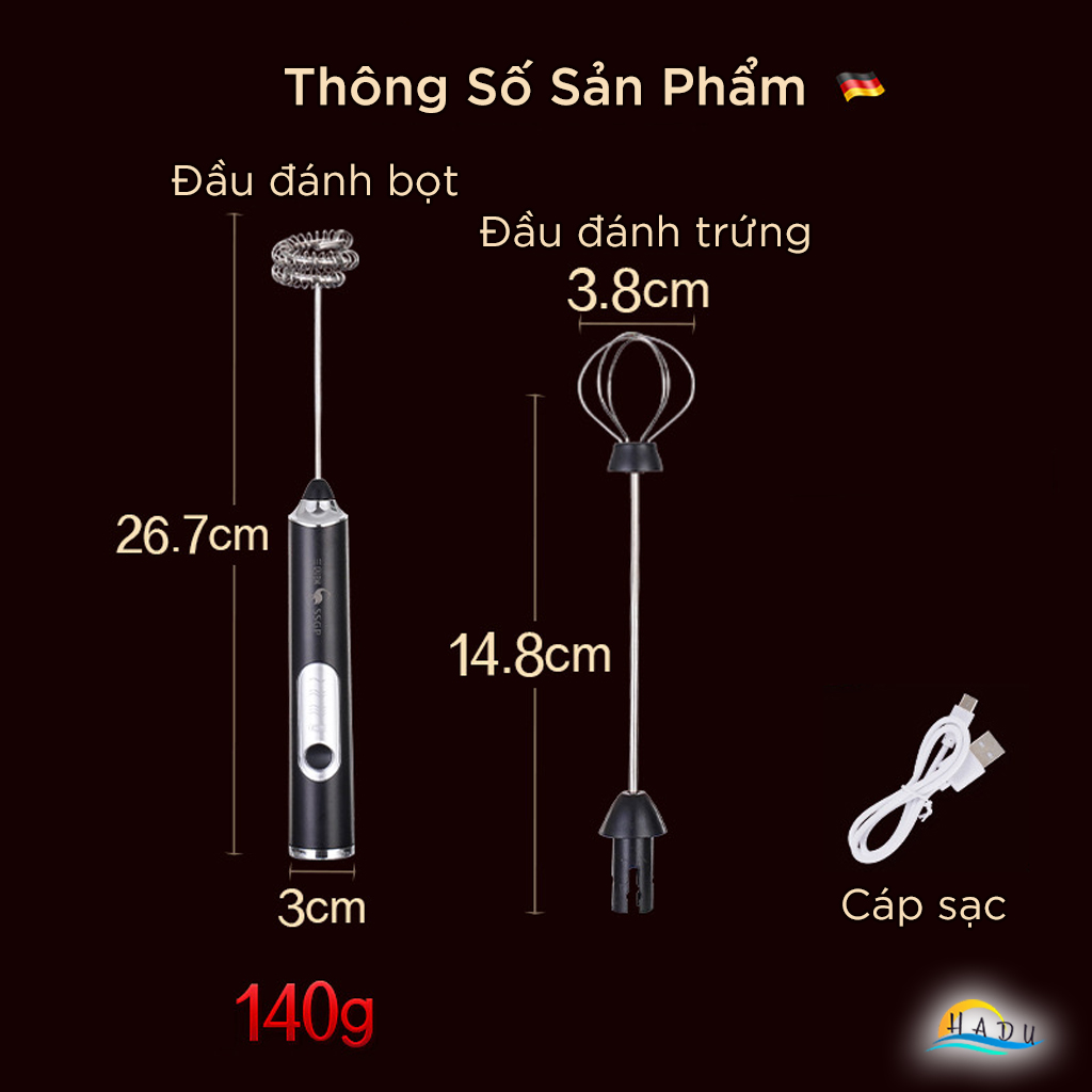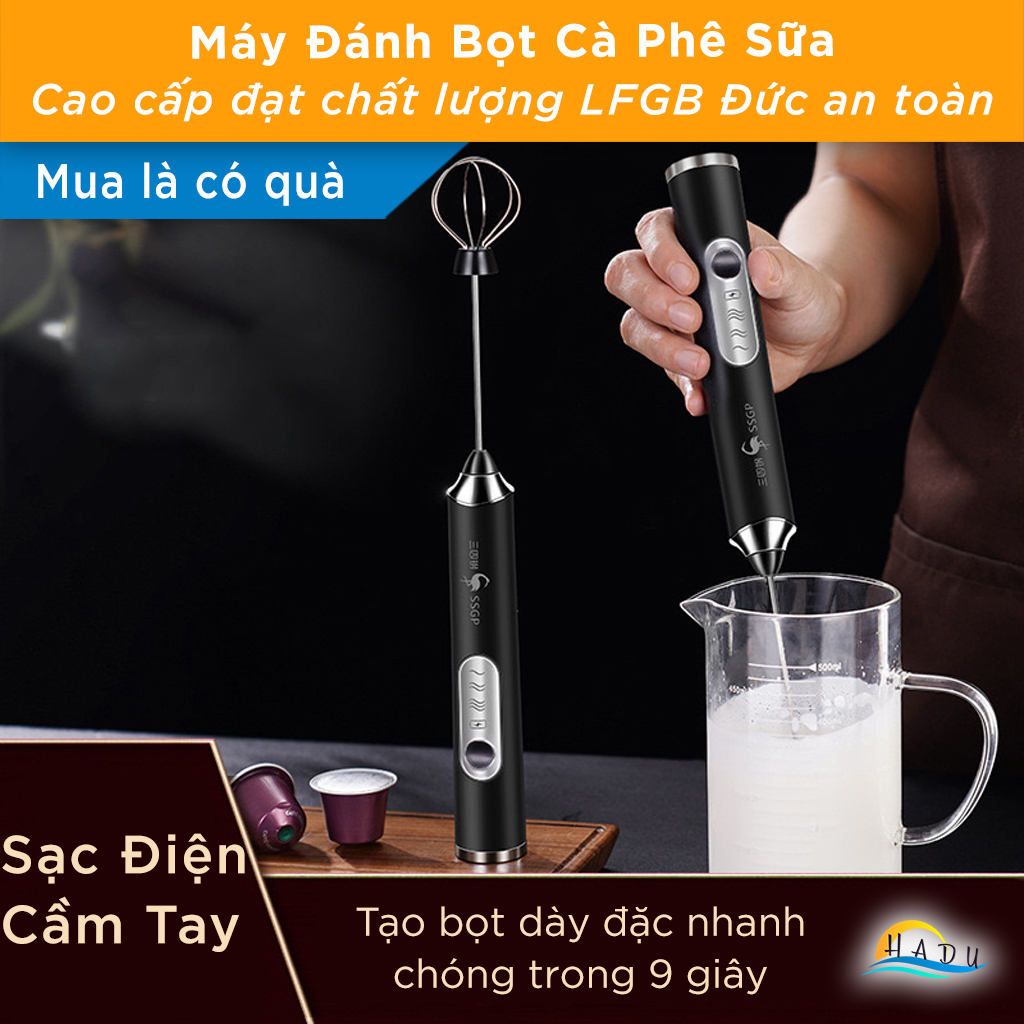 Máy Đánh Bọt Cà Phê, Sữa, Trứng Cao Cấp – Động Cơ Điện Tăng Cường, 3 Tốc Độ, Đầu Inox 304, Sạc Điện SSGP