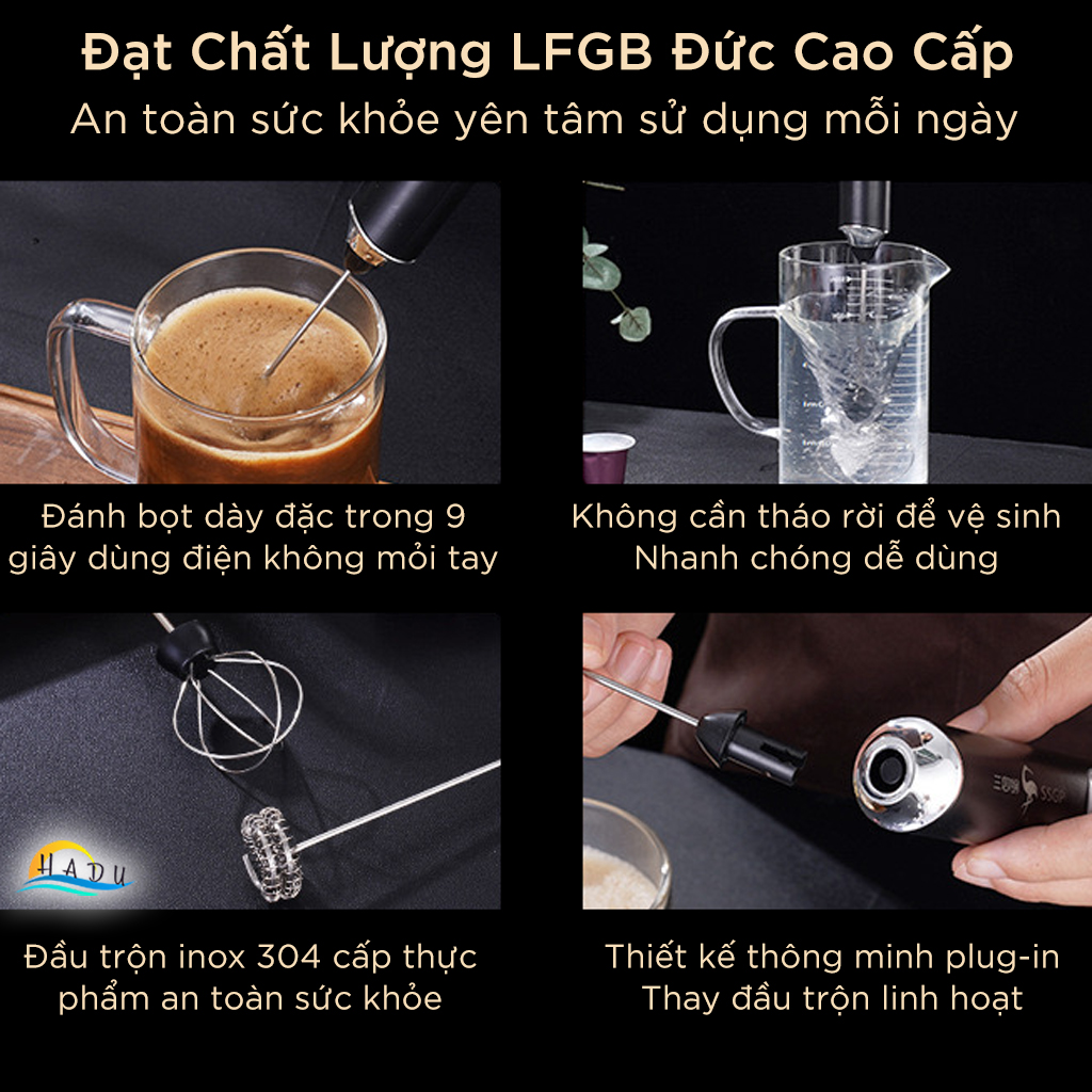 - Tạo Bọt Nhanh Chóng: Động cơ mạnh mẽ giúp bạn tạo bọt cho cà phê, sữa, trứng một cách nhanh chóng chỉ trong vài giây.