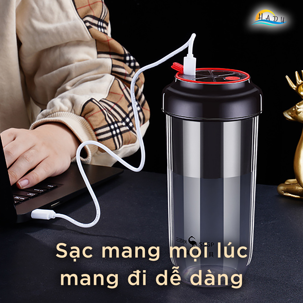 Máy Xay Sinh Tố Cầm Tay Mini – Động Cơ Mạnh Mẽ, Pin 2400mAh, Ly Thủy Tinh Borosilicat Cao Cấp, An Toàn LFGB Đức SSGP
