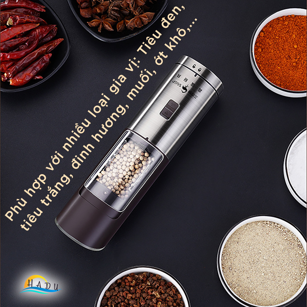 - Phù hợp với nhiều loại gia vị khác nhau: Tiêu đen, tiêu trắng, đinh hương, muối, ớt khô,... - Máy xay tiêu cầm tay là sản phẩm cao cấp nên bạn hoàn toàn yên tâm về chất lượng sản phẩm nha.