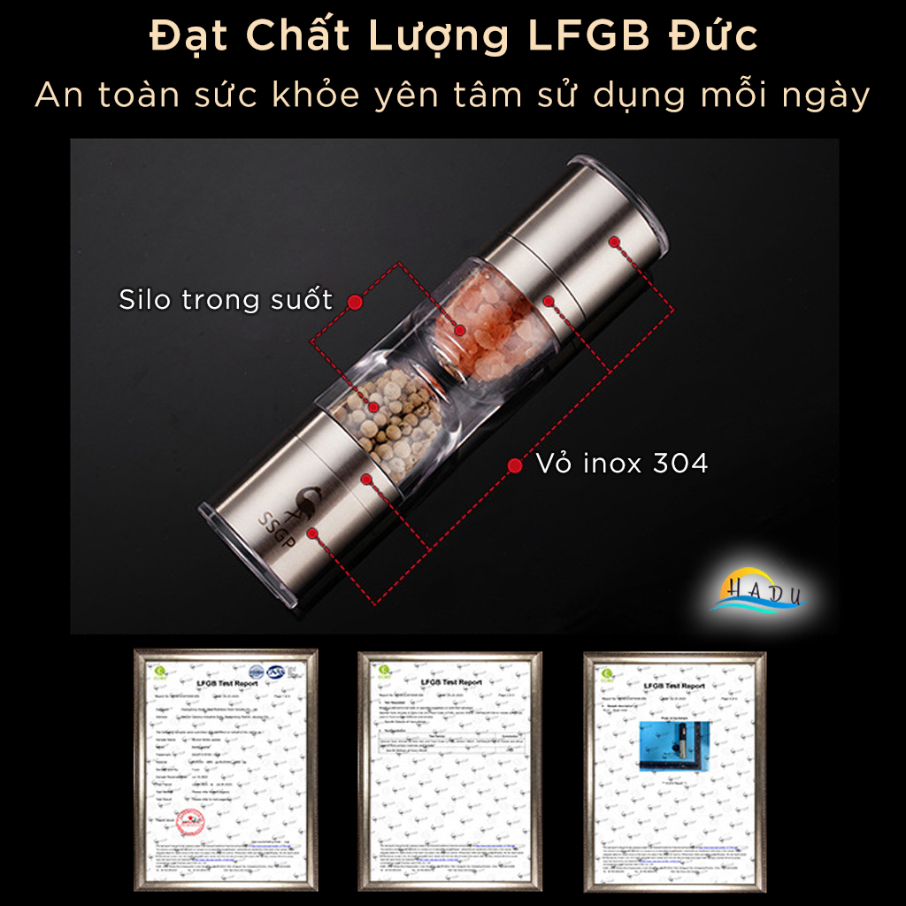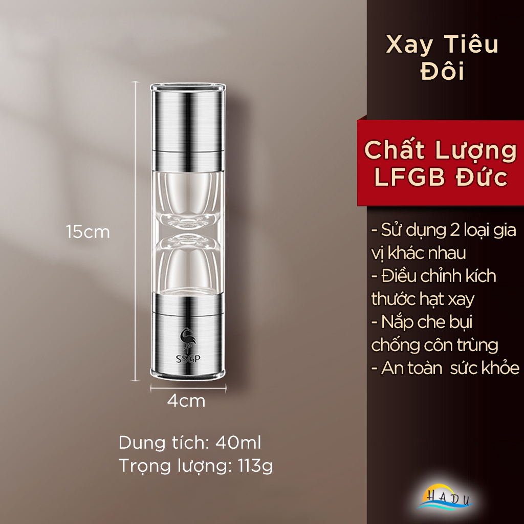 - Sang Trọng và Tiết Kiệm Không Gian: Với thiết kế hiện đại, máy xay tiêu này không chỉ đẹp mắt mà còn cực kỳ tiện dụng cho mọi nhà bếp.