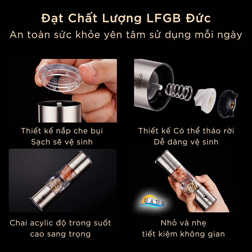 - Tiện Lợi và Tiết Kiệm Thời Gian: Thiết kế nhỏ gọn và dễ sử dụng, giúp bạn có thể xay tiêu một cách nhanh chóng và tiện lợi, tiết kiệm thời gian trong việc nấu nướng.