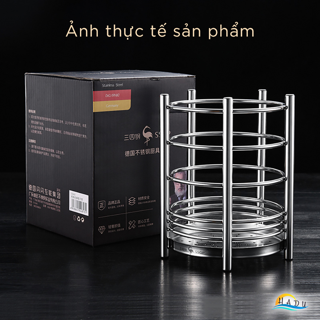 Ống Đựng Đũa Thìa Inox 304 SSGP, Thông Gió 360° Chống Mốc, Sức Chứa Lớn, Cao 15.5cm, Đạt Chất Lượng LFGB Đức