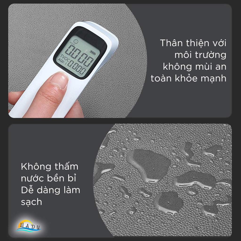 - Chất Liệu Da PU Cao Cấp: Không thấm nước, dễ dàng vệ sinh mà không cần giặt, giúp thảm luôn sạch sẽ.