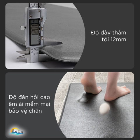 - Độ Dày 12mm, Độ Đàn Hồi Cao: Thảm mềm mại, mang đến cảm giác thoải mái khi đứng lâu nấu ăn.
