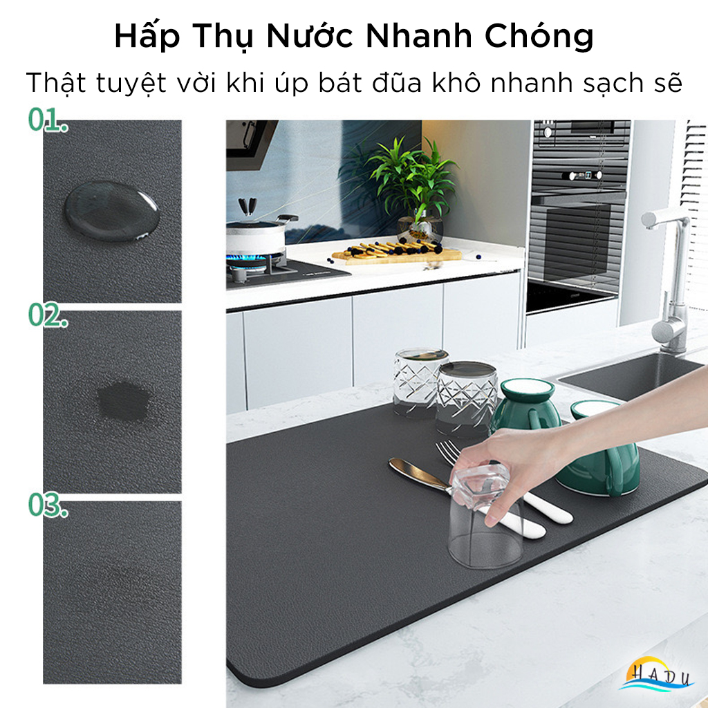 Thảm Úp Chén Dĩa Diatomite HADU, Siêu Thấm Hút, Khô Nhanh, Chống Trượt, 40x50cm, Màu Xám