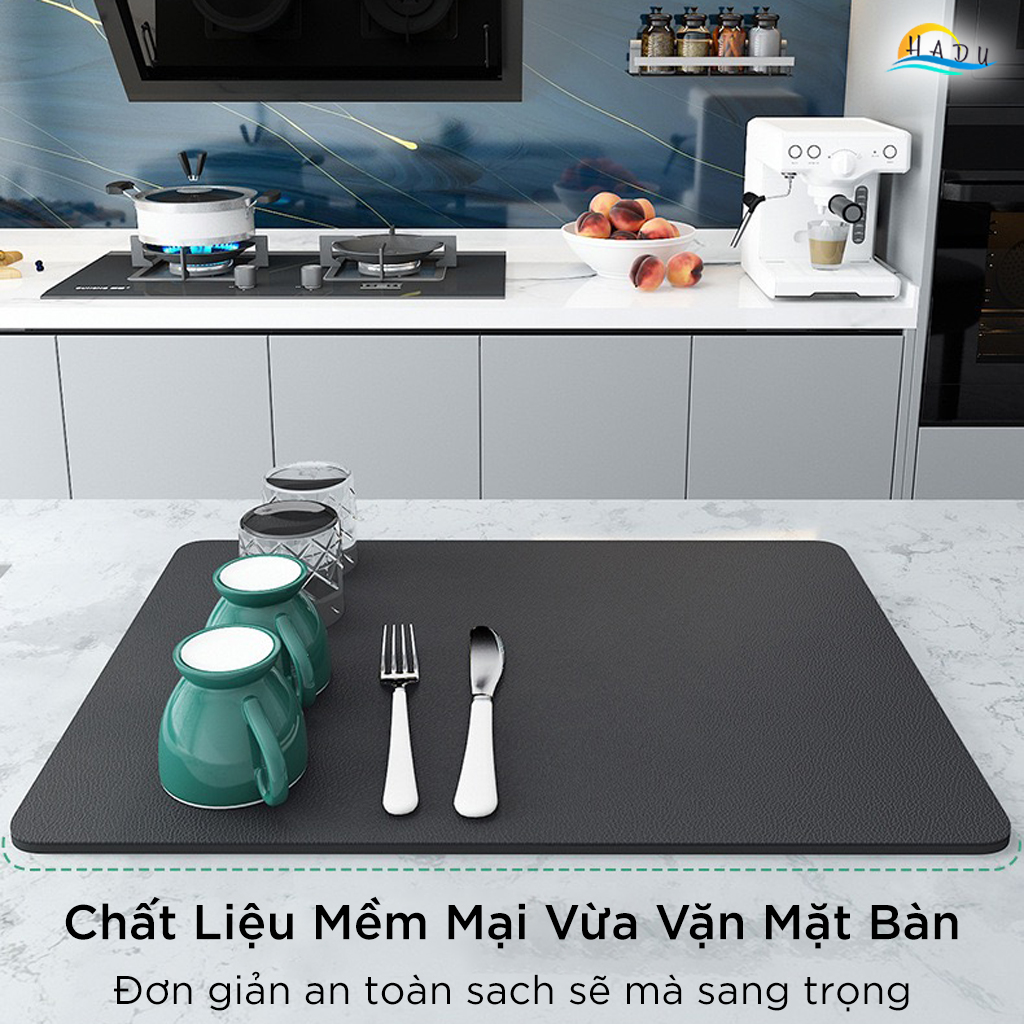 Khám phá Thảm Lót Bồn Rửa Chén Diatomite Cao Cấp, được thiết kế với nhiều lớp vật liệu cao cấp gồm da kỹ thuật, bùn tảo cát, bọt biển tái sinh và đáy cao su chống trượt, giúp hấp thụ nước nhanh chóng và giữ cho không gian bếp của bạn luôn khô ráo. Chất liệu mềm mại vừa vặn với mặt bàn, tạo sự sang trọng cho không gian bếp.