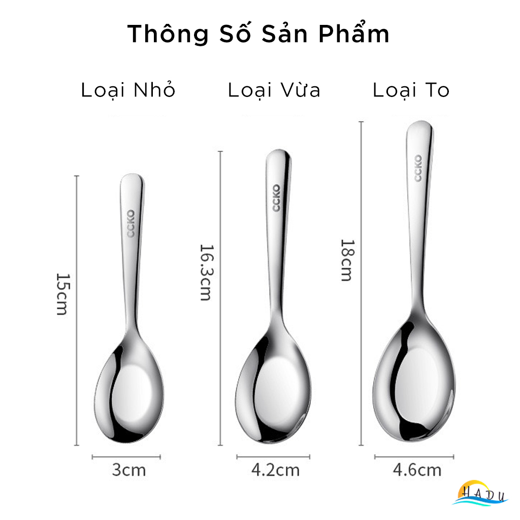 Thìa Ăn Phở Inox 304 CCKO, Đúc Nguyên Khối, Lòng Sâu, 3 Size