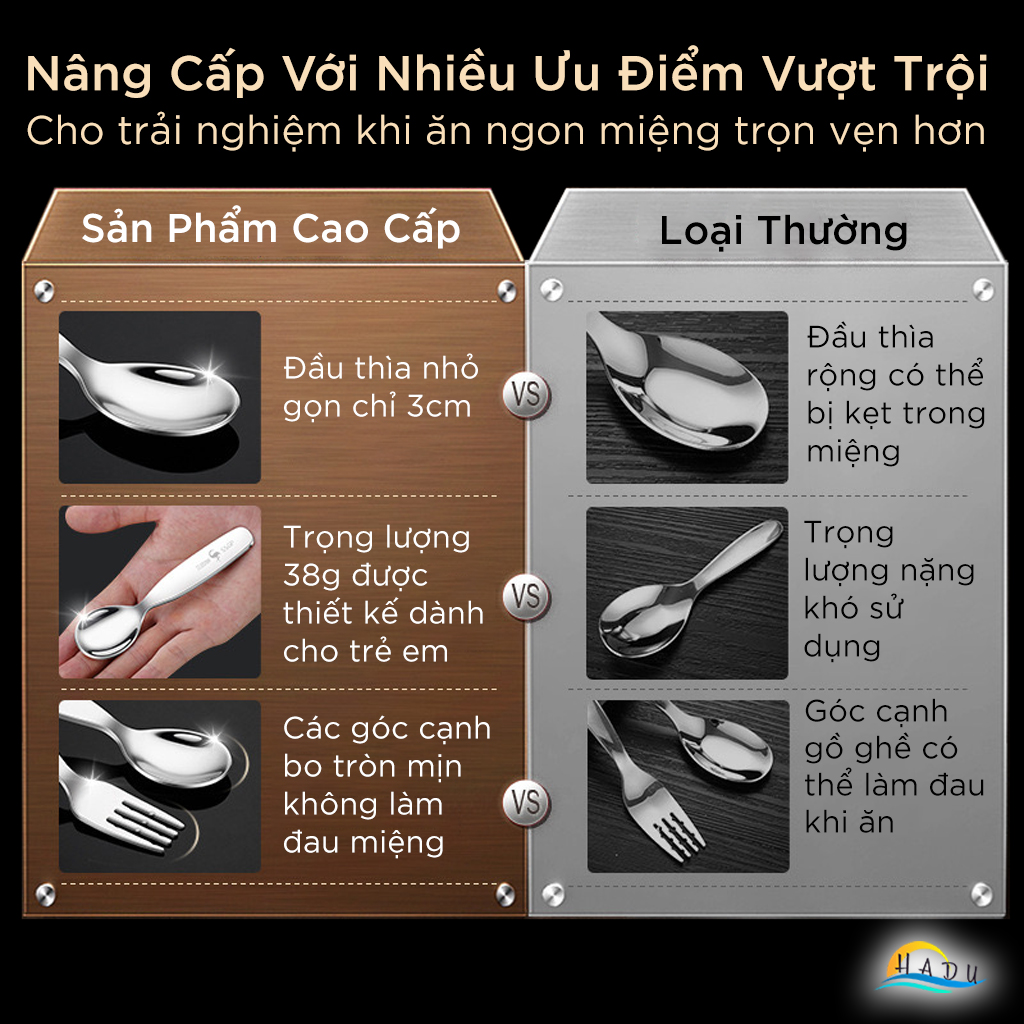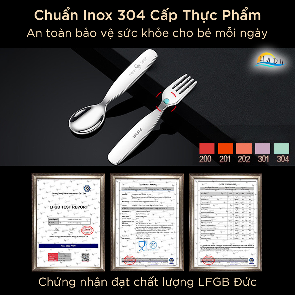 - Chất Lượng Cao Cấp: Được làm từ inox 304 cấp thực phẩm, bộ thìa dĩa này an toàn cho sức khỏe bé yêu.