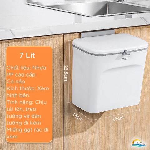 Thùng Rác Treo Tủ Bếp CCKO 7L 9L, Nắp Ngăn Mùi, 2 Chế Độ Mở (Trượt & Lật)