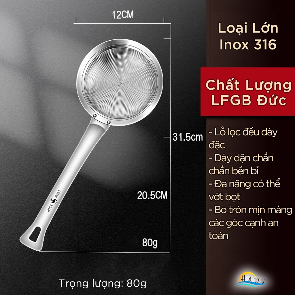 - Dễ Dàng Sử Dụng: Thiết kế tiện dụng giúp bạn dễ dàng hớt bọt dầu mỡ, loại bỏ cặn thừa nhanh chóng và dễ dàng.