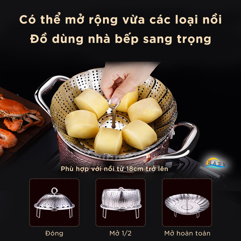 Xửng Hấp Gấp Gọn Inox 304 SSGP, Điều Chỉnh Theo Kích Cỡ Nồi, Đạt Chất Lượng LFGB Đức